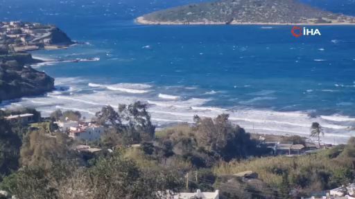 Dün öğleden sonra başlayan kuvvetli rüzgar, bugün fırtınaya dönüştü ve deniz üzerinde dev dalgalar oluşturarak Torba Koyu'nda denizin rengini kahverengiye çevirdi. Yarımada'nın kuzey sahillerine vuran dev dalgalar nedeniyle denizcilere denize çıkmama uyarısı yapıldı.